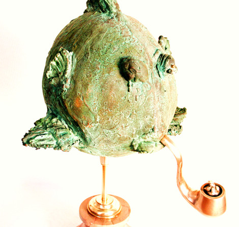 "Pilot Fish Smoking a Pipe" sparks the imagination and tells a unique story of a fish embodying the spirit of a seasoned sea captain. Its playful nature, combined with the artistry of copper and the allure of a green patina, creates a visual experience that captivates and delights.